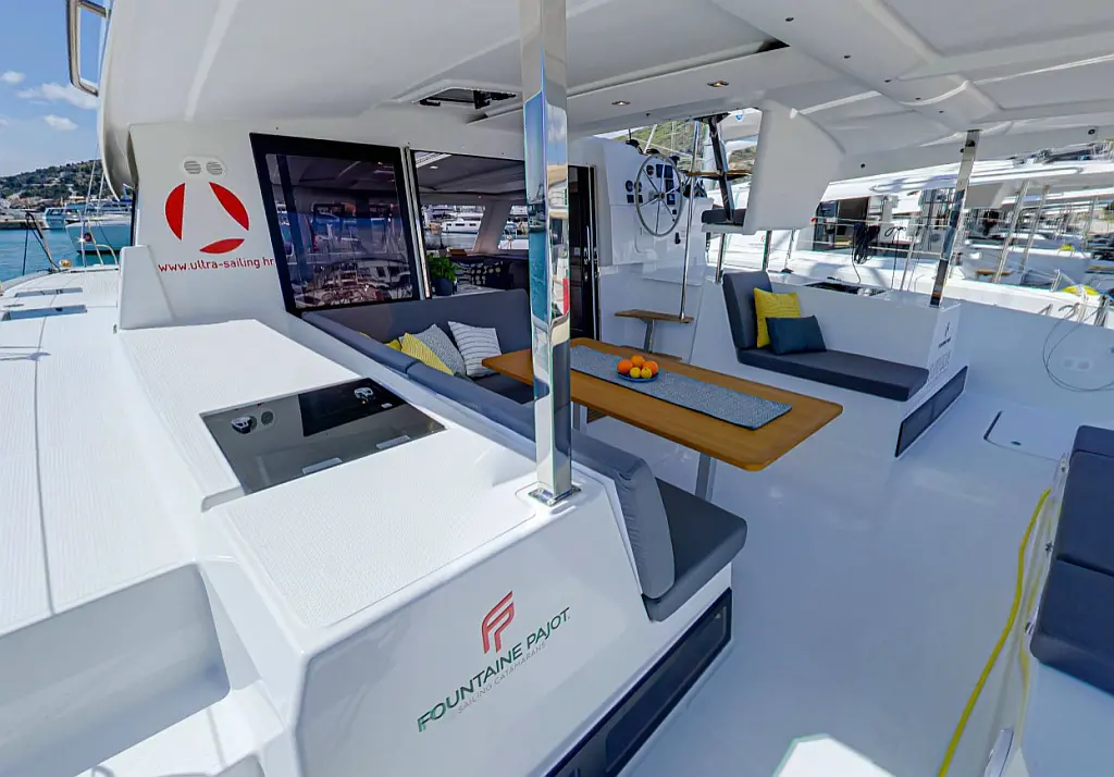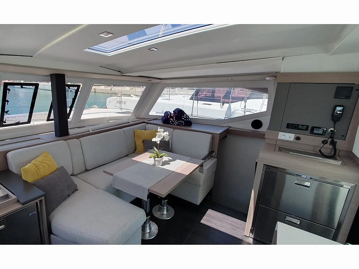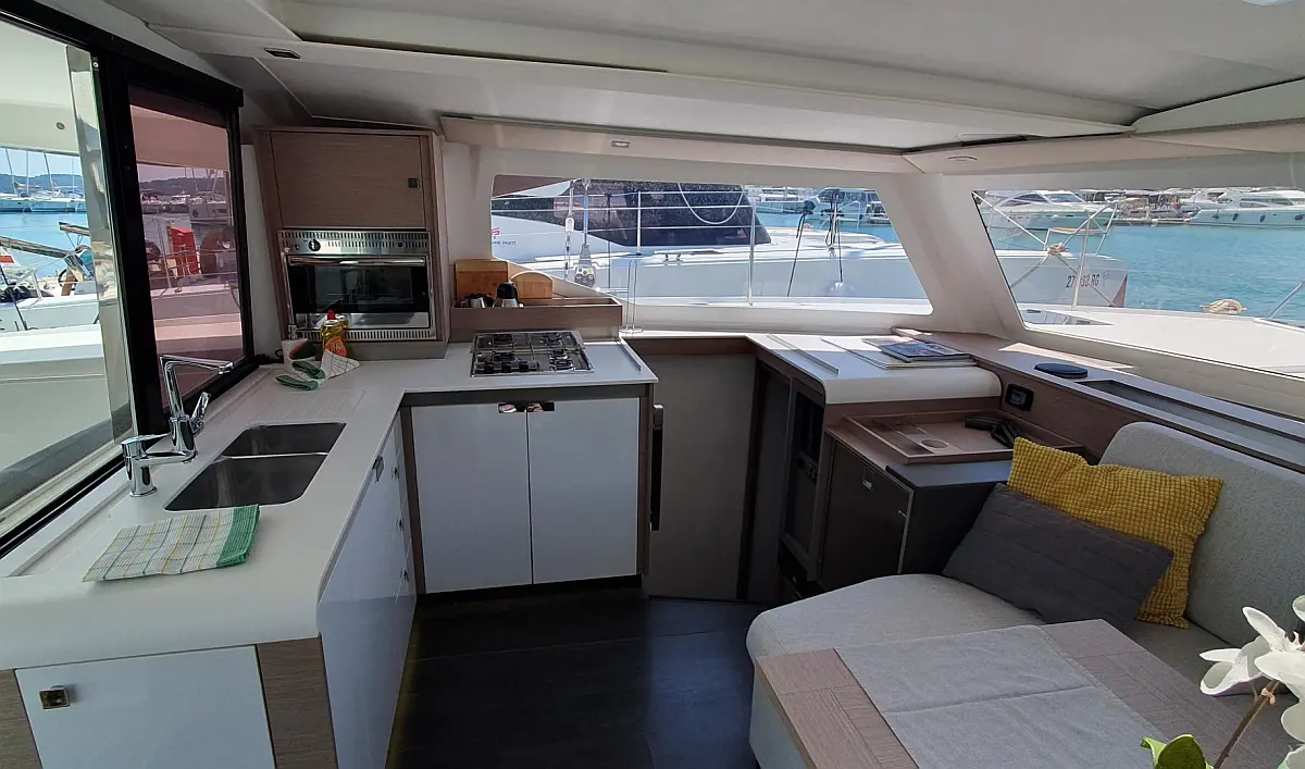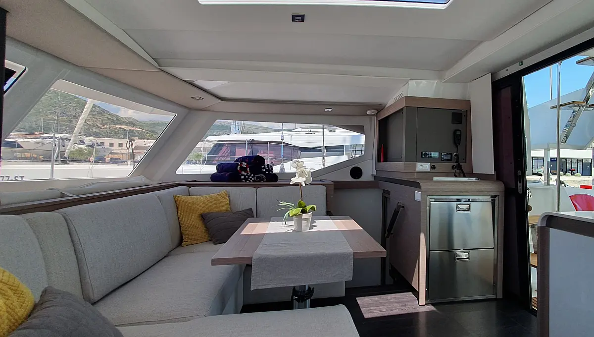 Klimaanlage, Kaffeemaschine, Beiboot, Elektrische Winch (Segel), Inverter, Bimini, Lautsprecher im Cockpit, Cockpit-Kissen, Kühlschrank