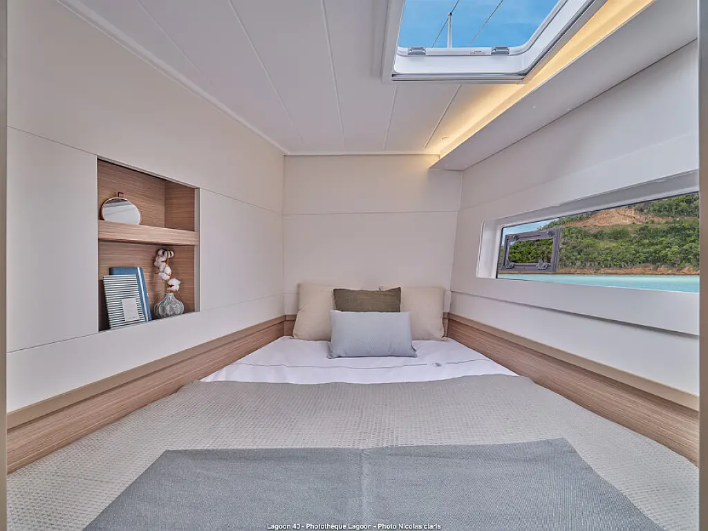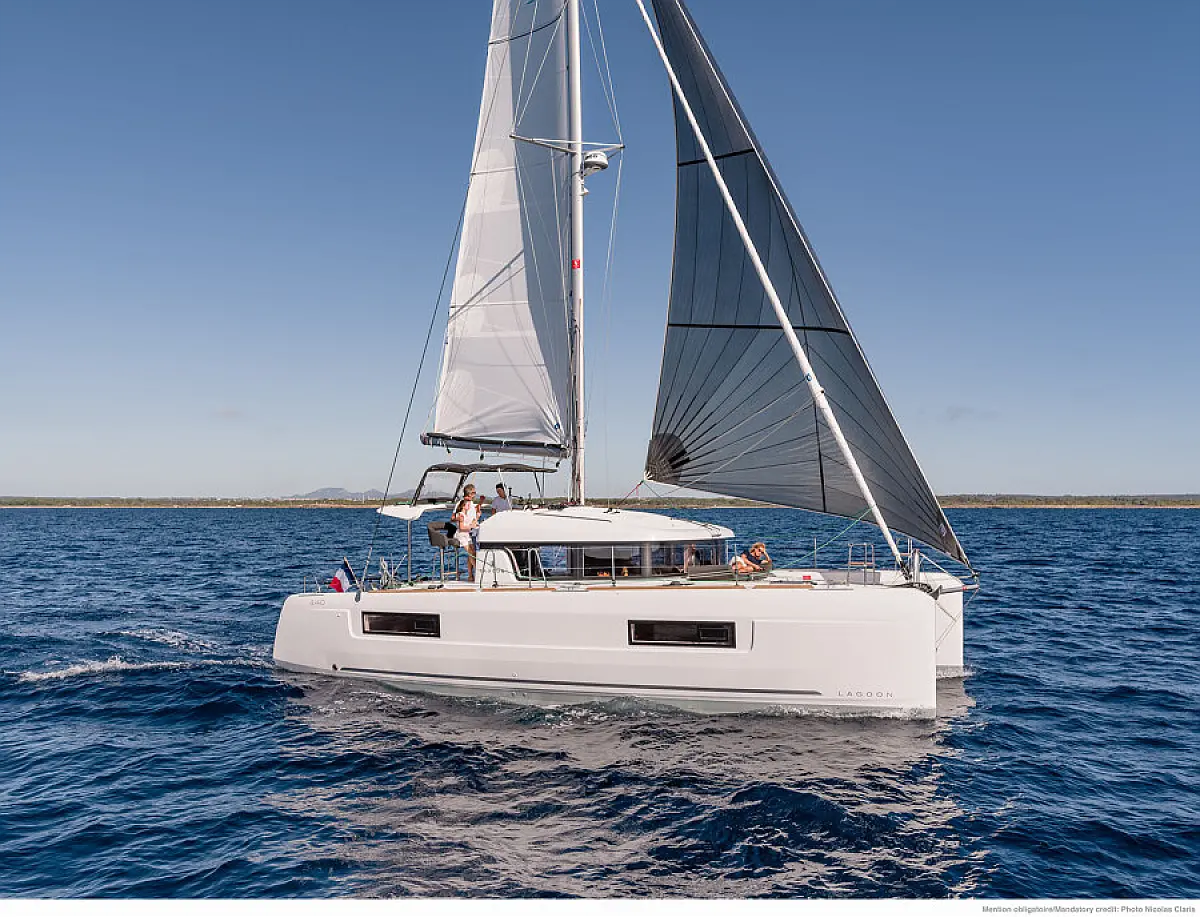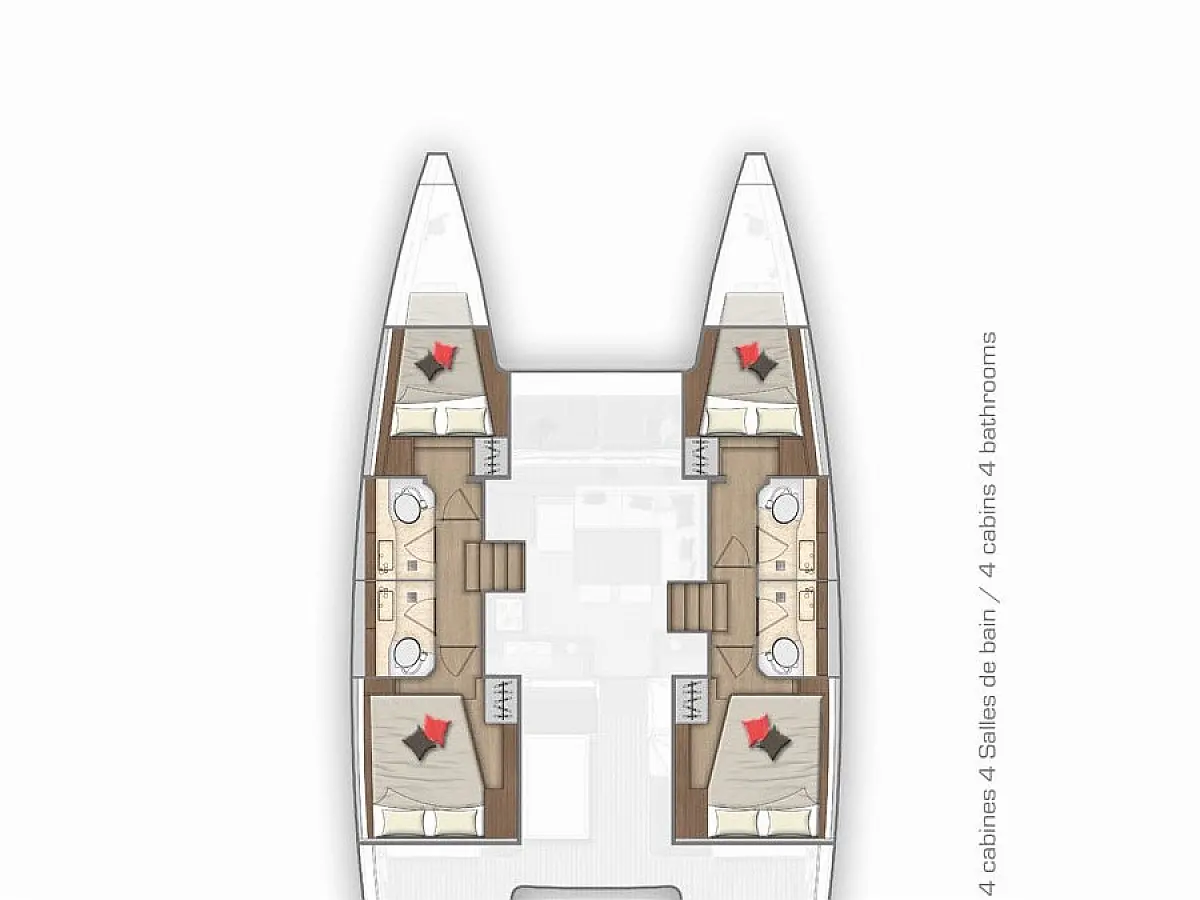 Klimaanlage, Bimini, Elektrische Winch (Segel), Wi-Fi und Internet, Cockpit-Kissen, Teak Cockpit, Eismaschine, Kaffeemaschine, Kühlschrank, Generator, Inverter, Elektrische Toilette, Außenbordmotor, Beiboot