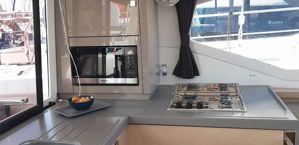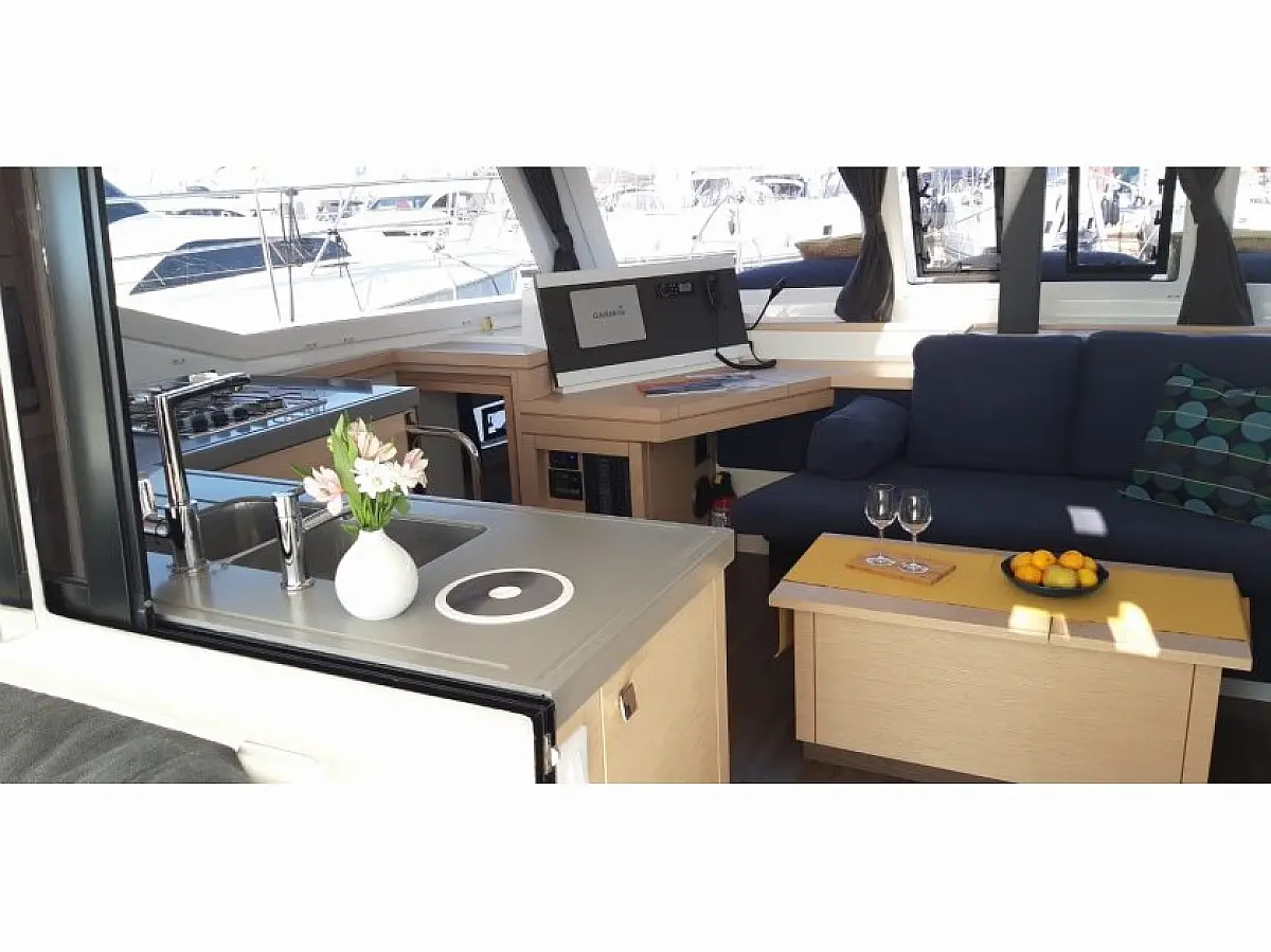 Generator, Klimaanlage, Heizung, Wassermacher, Kaffeemaschine, Waschtrockner, Beiboot, Elektrische Winch (Segel), Inverter, Bimini, Lautsprecher im Cockpit, Cockpit-Kissen, Kühlschrank