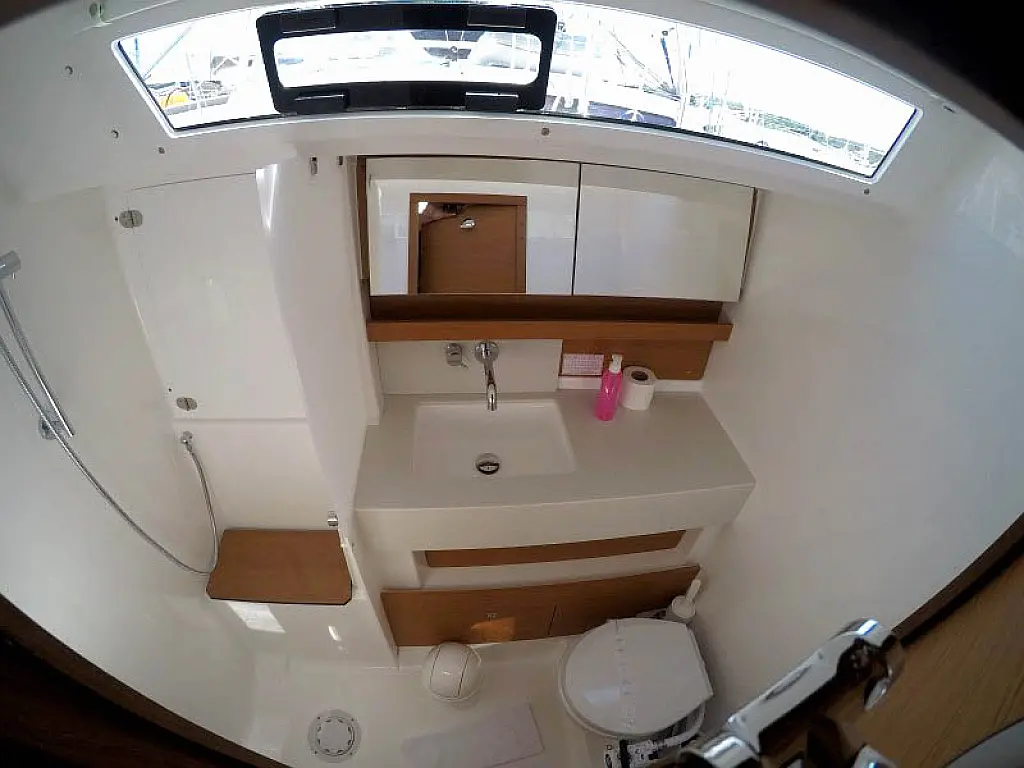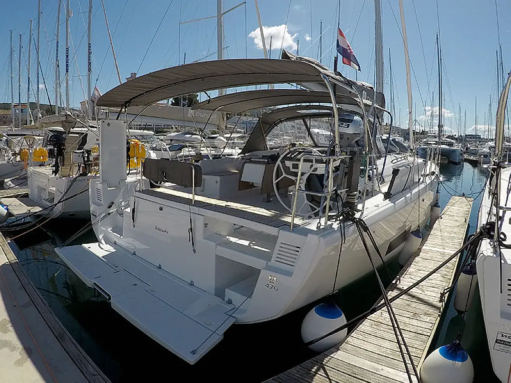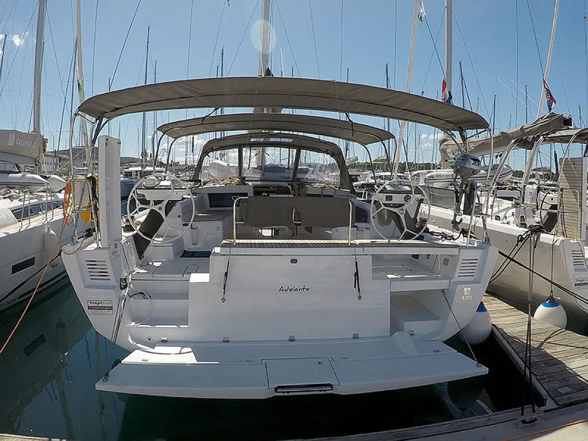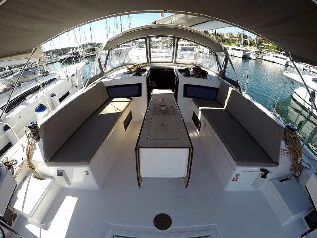 Kühlschrank, Grill im Cockpit, Bimini, Cockpit-Kissen, Sprayhood, Außenbordmotor, Beiboot, Wi-Fi und Internet