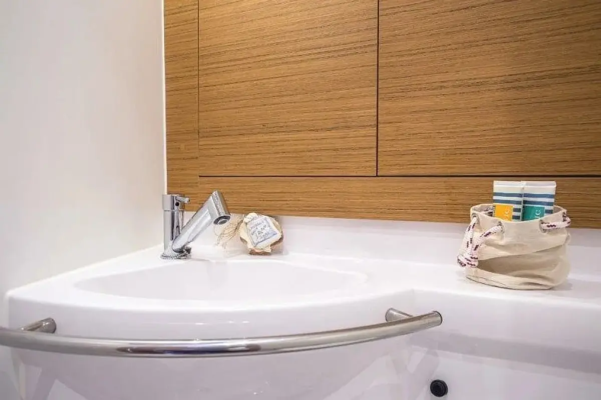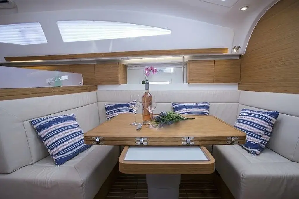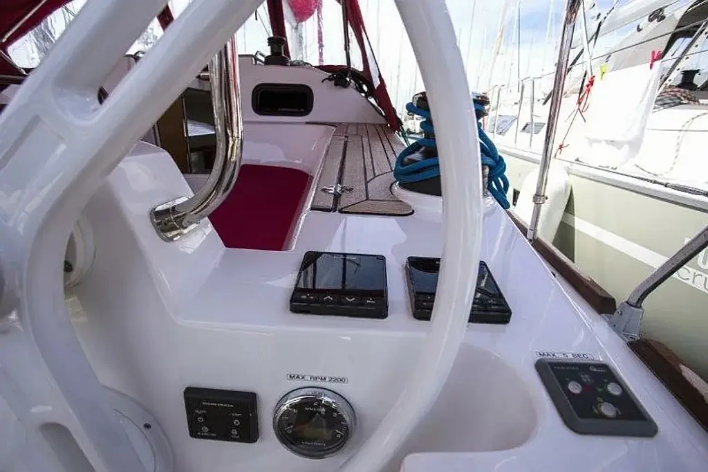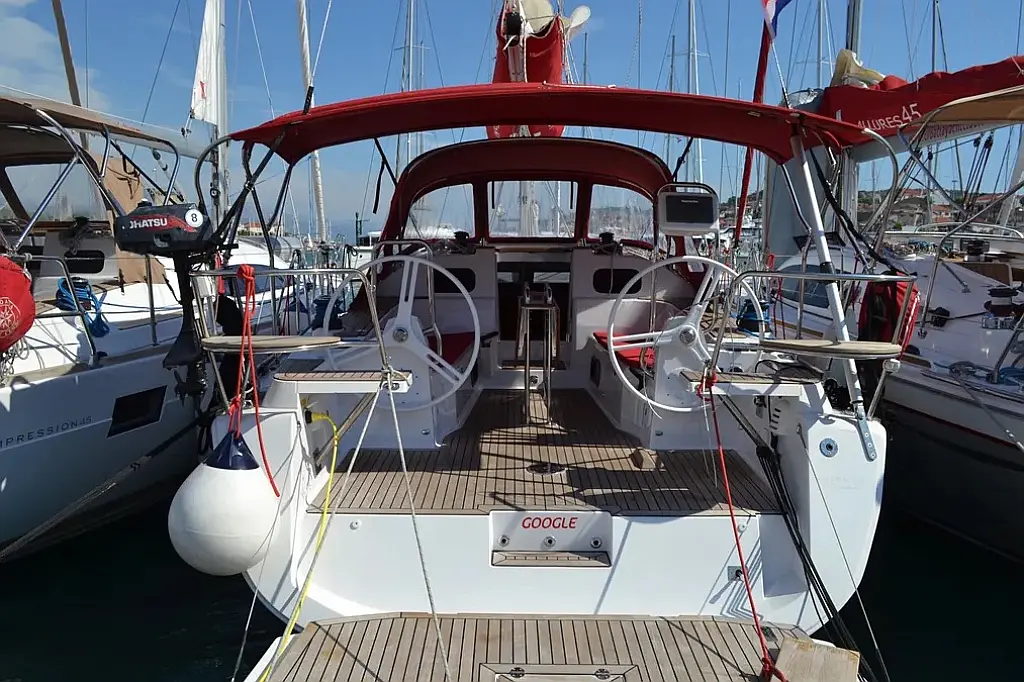 Badeplattform, Bimini, Cockpit-Kissen, Lautsprecher im Cockpit, Beiboot, Kühlschrank, Heizung, Fäkalientank, Sprayhood, Teak Cockpit, Wi-Fi und Internet