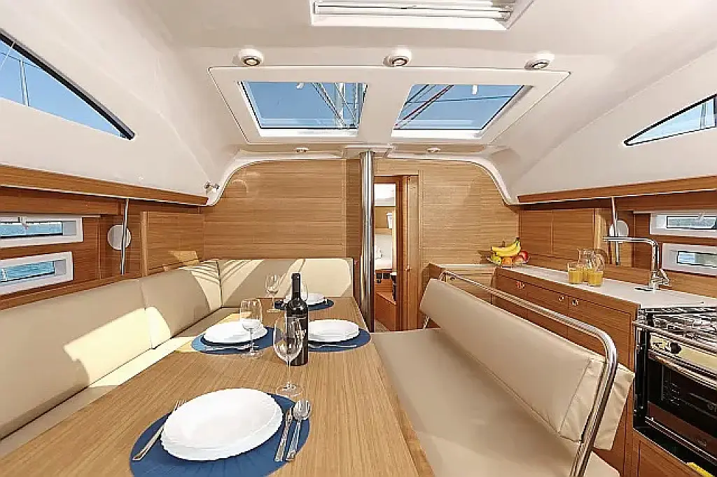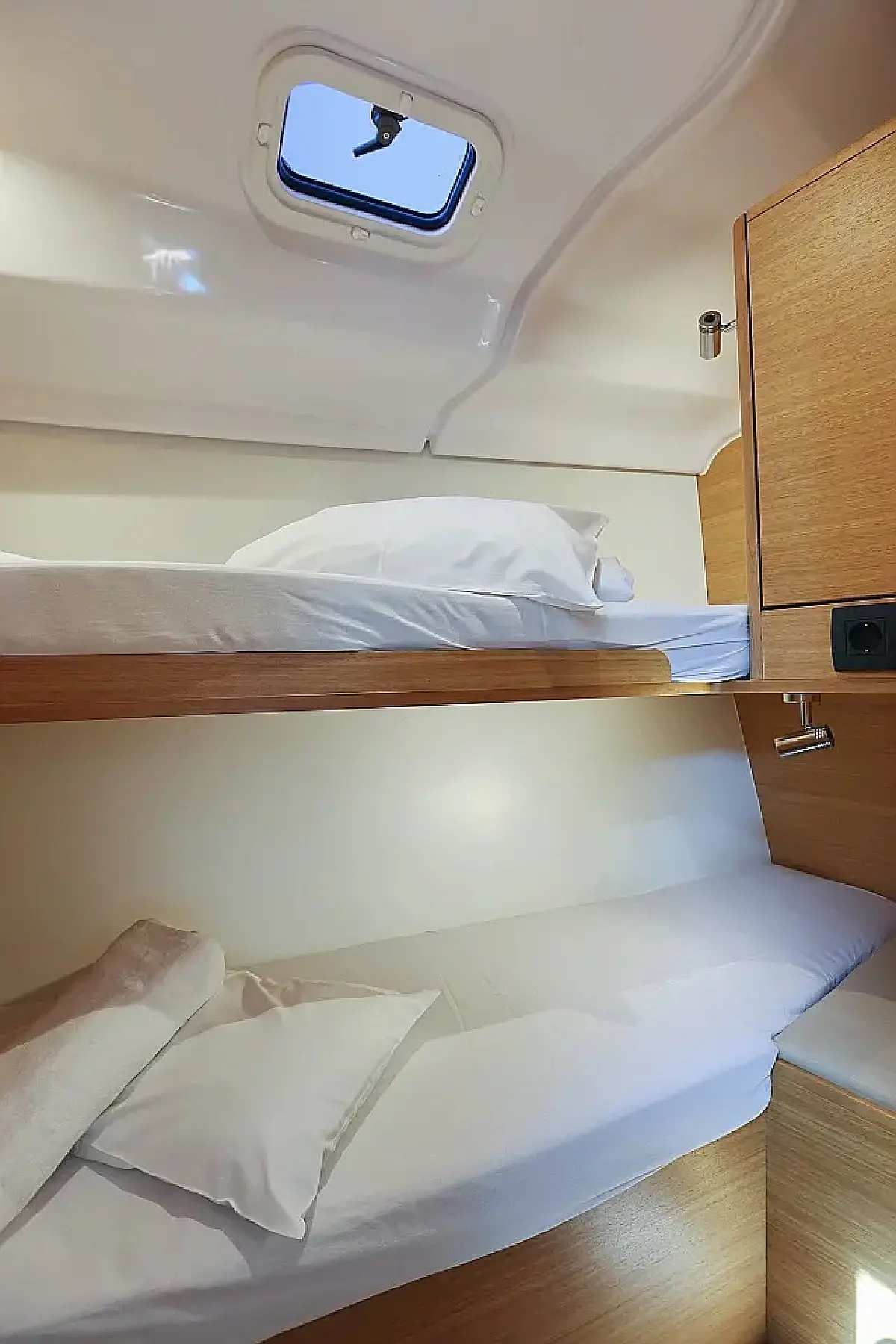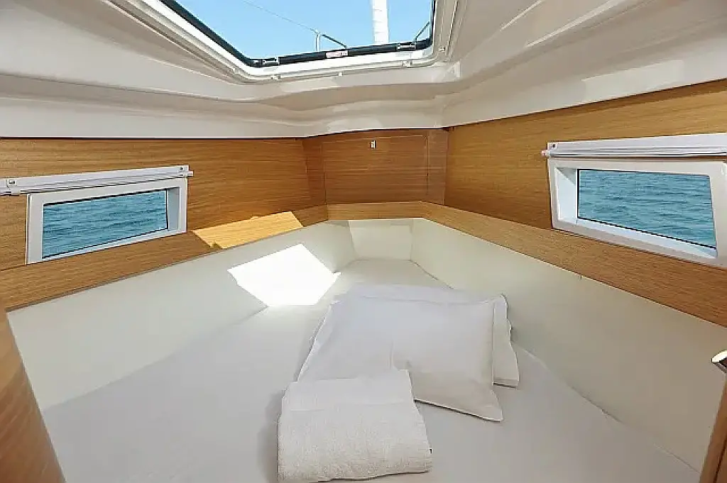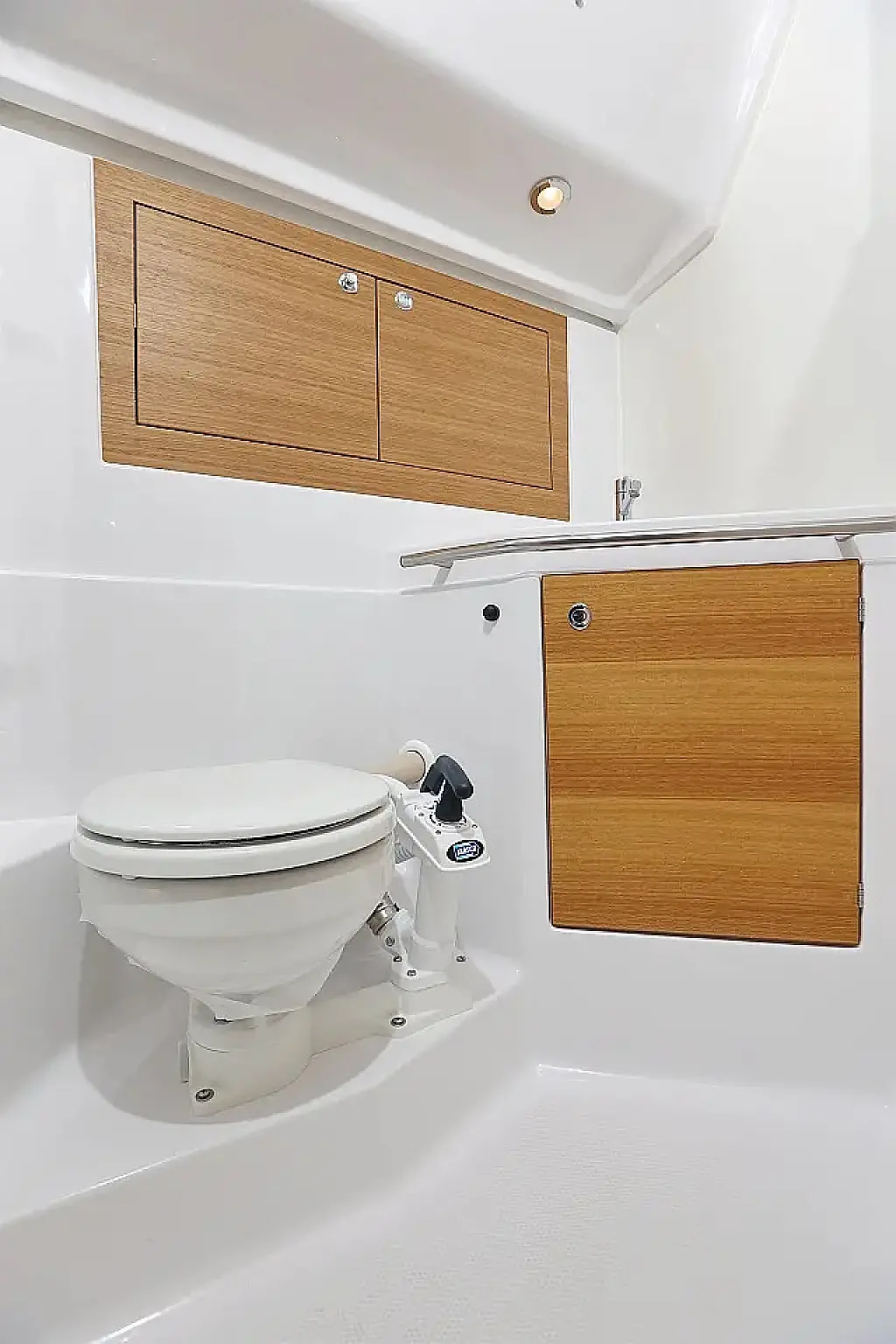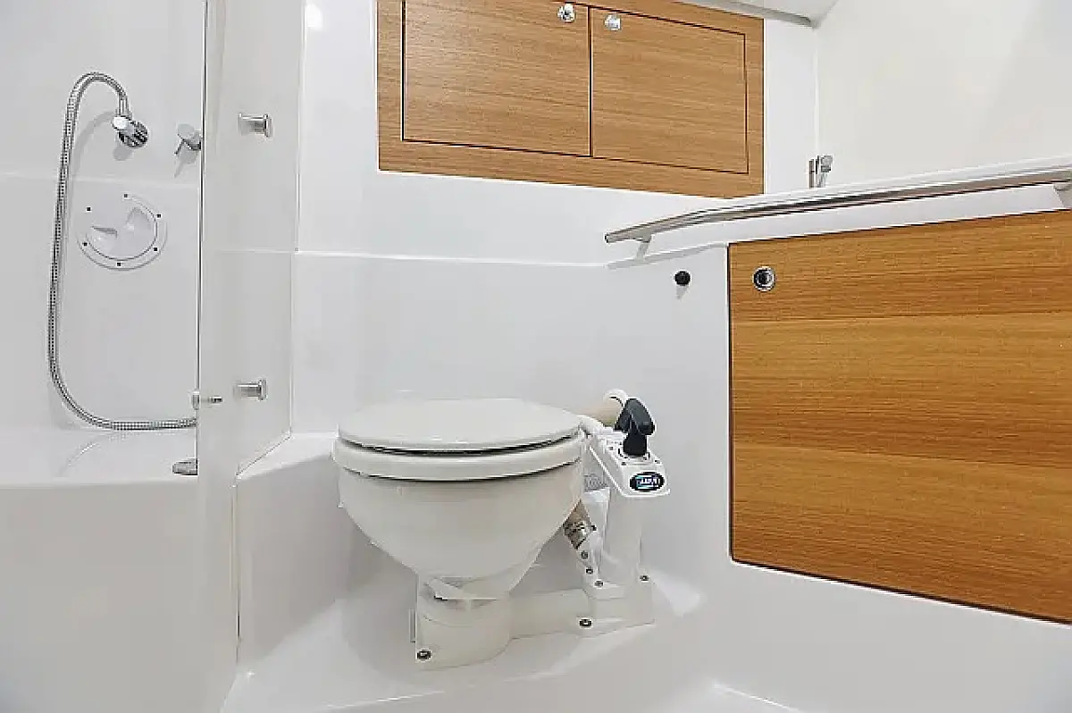 Klimaanlage, Badeplattform, Bimini, Cockpit-Kissen, Lautsprecher im Cockpit, Kühlschrank, Heizung, Fäkalientank, Inverter, Solar-Panele, Sprayhood, Teak Cockpit, Wi-Fi und Internet