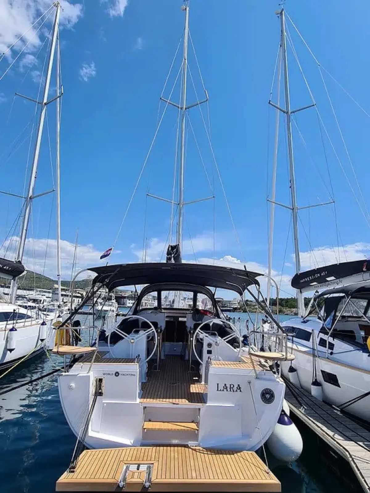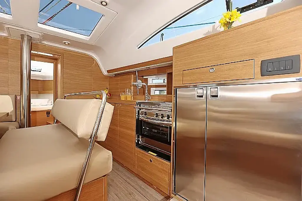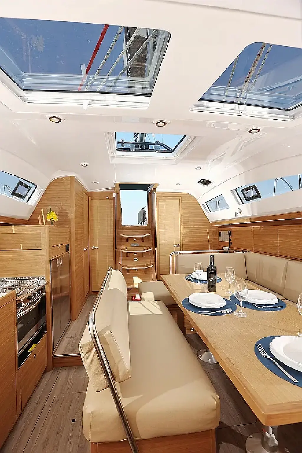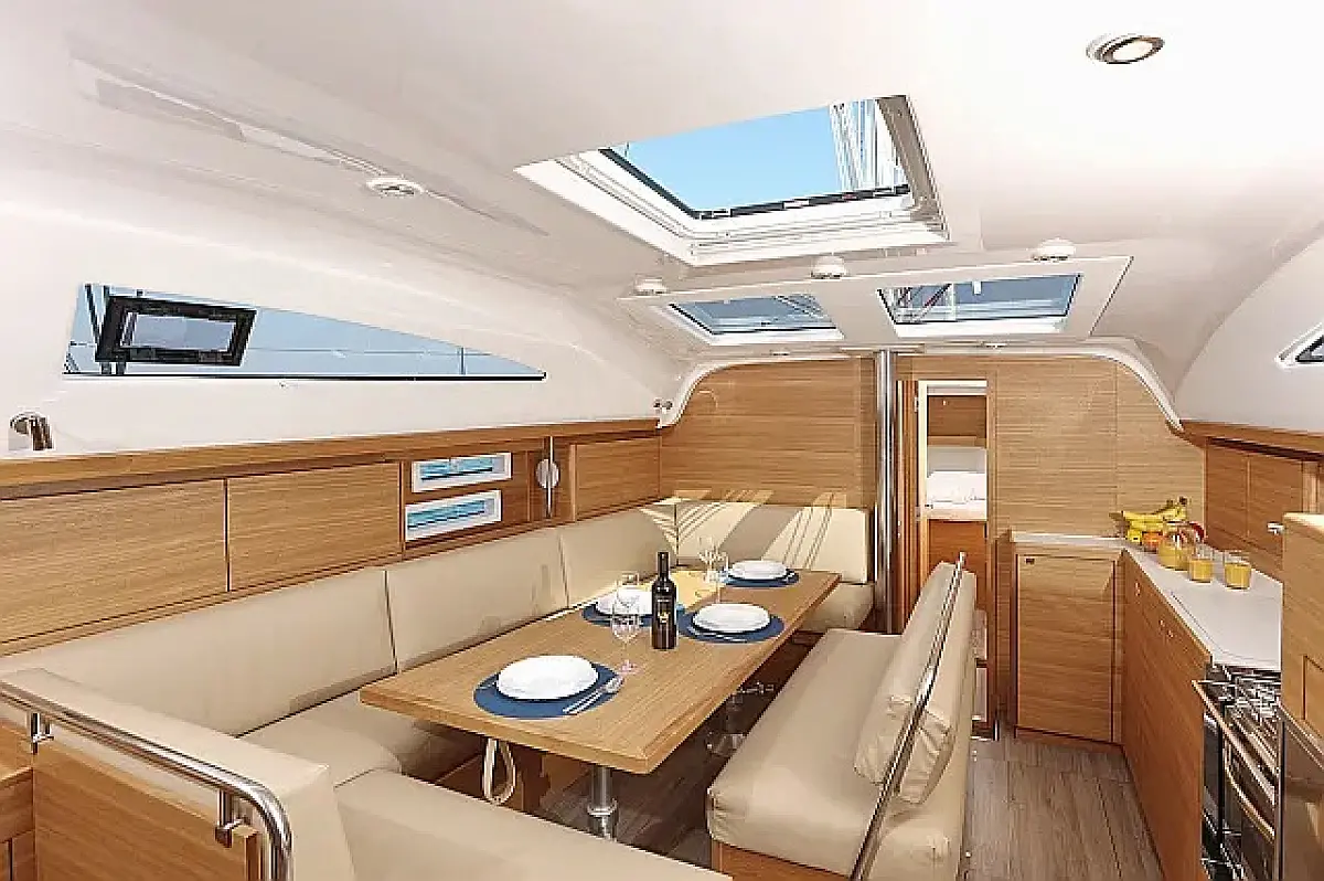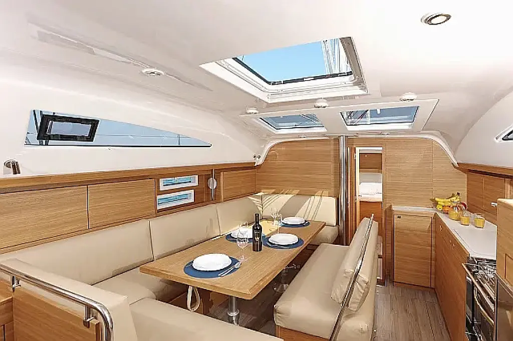 Klimaanlage, Badeplattform, Bimini, Cockpit-Kissen, Lautsprecher im Cockpit, Kühlschrank, Heizung, Fäkalientank, Inverter, Solar-Panele, Sprayhood, Teak Cockpit, Wi-Fi und Internet