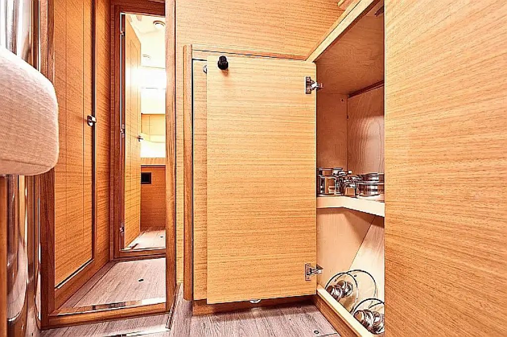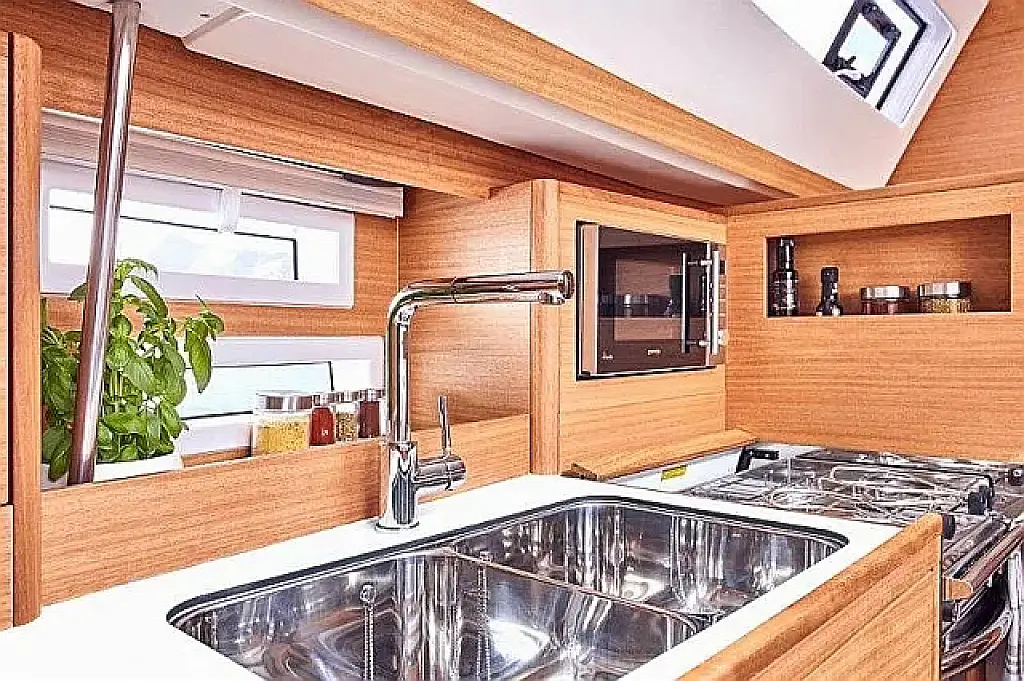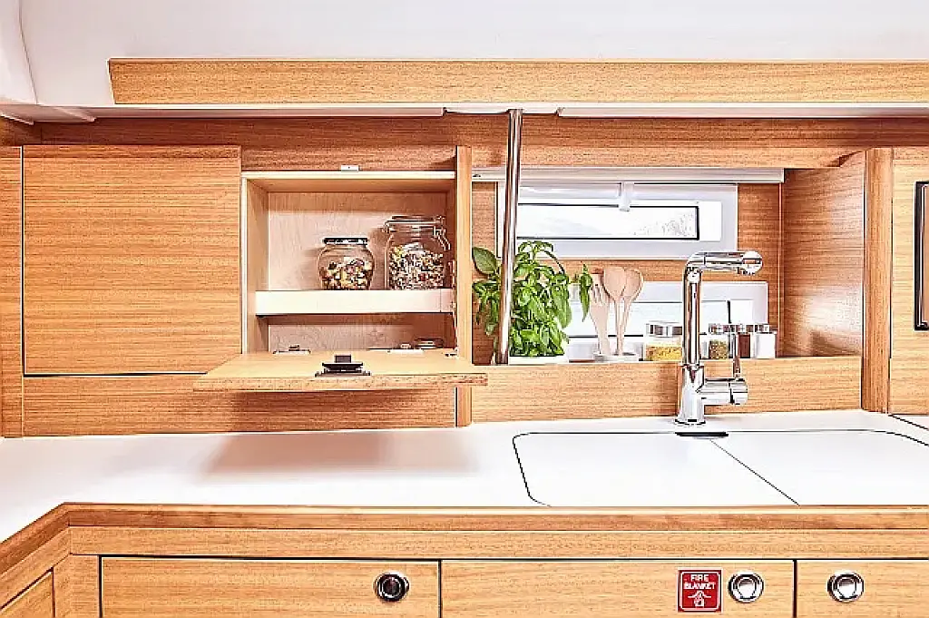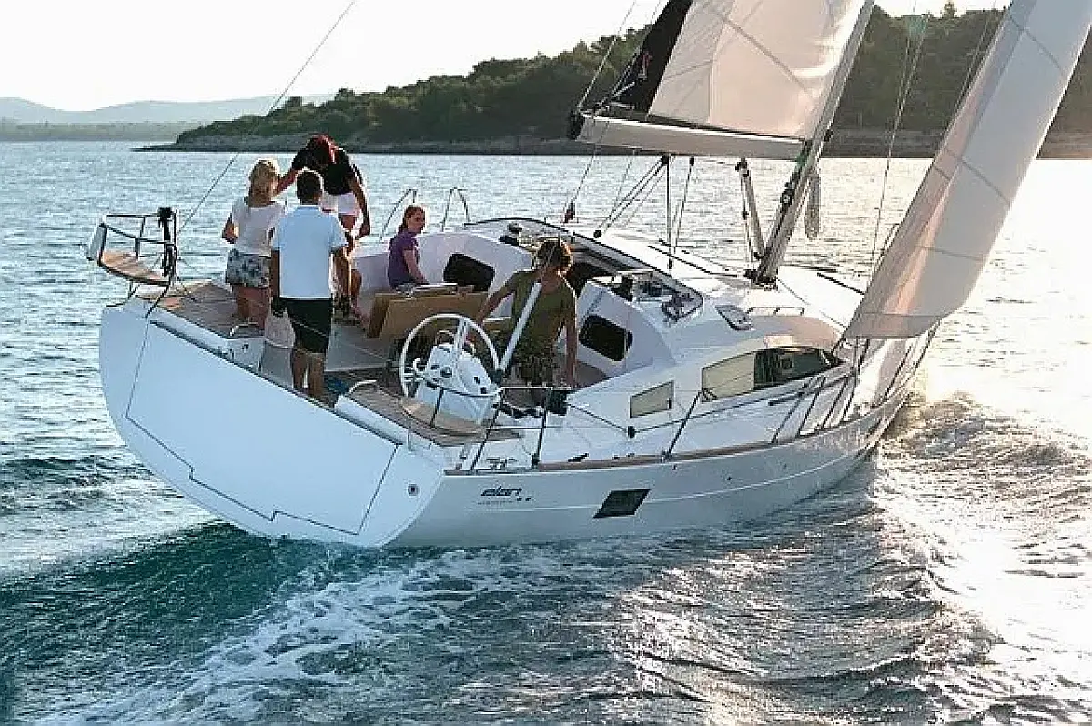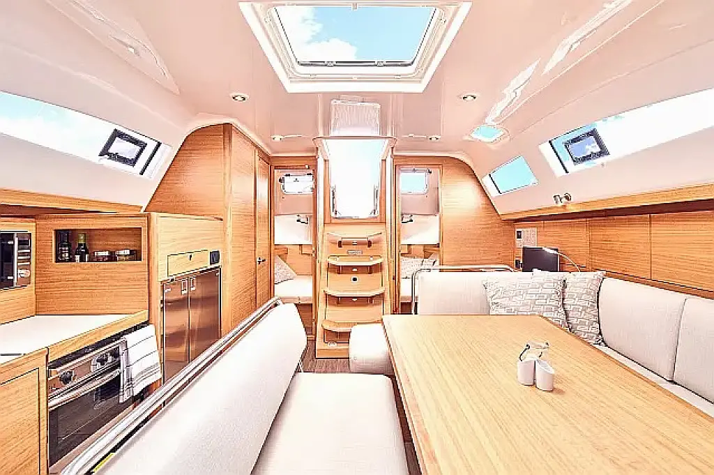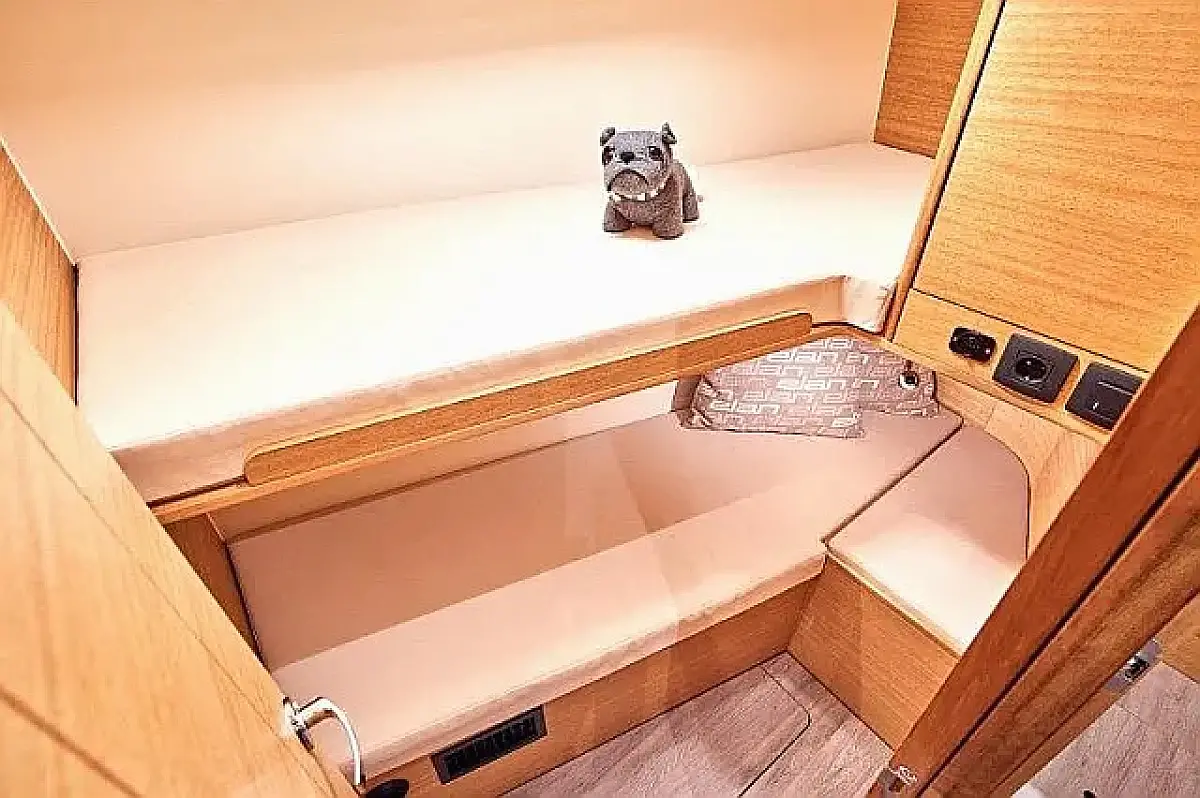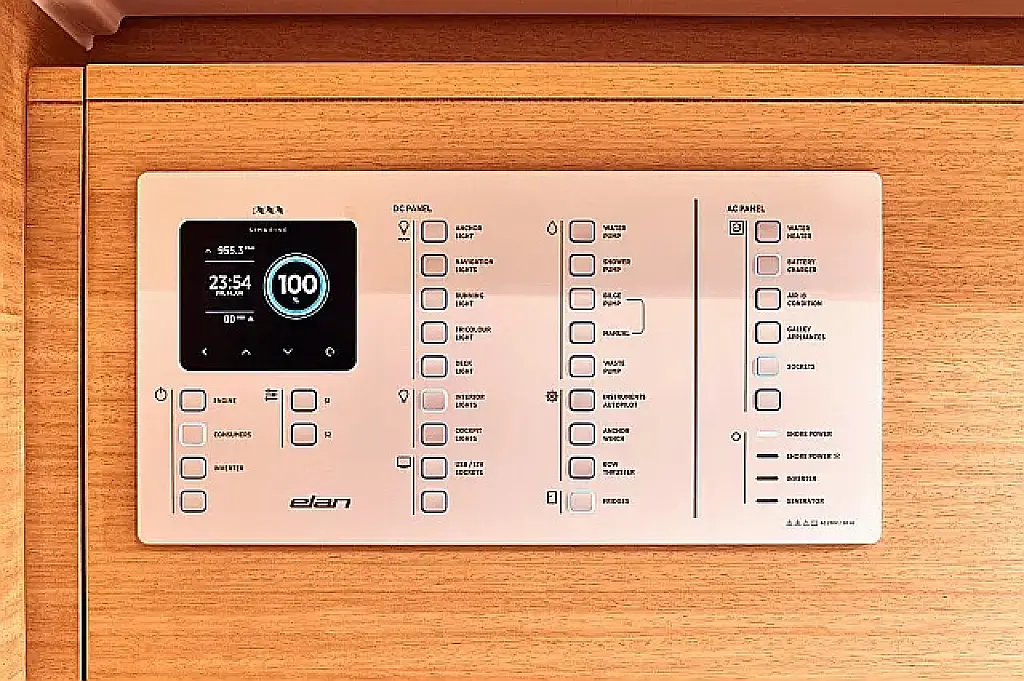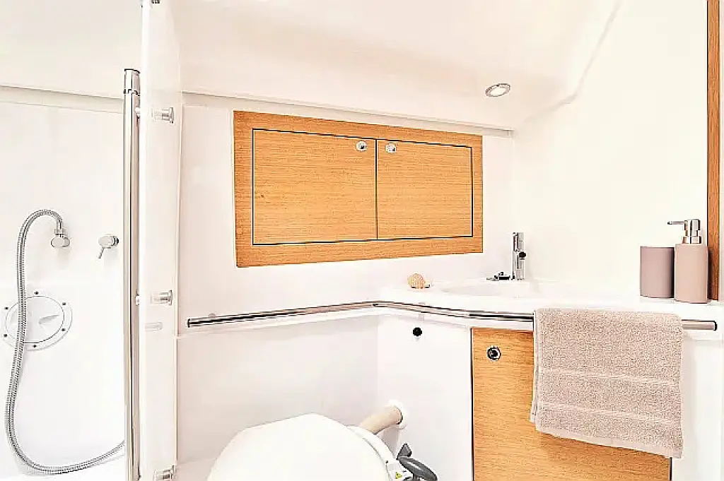 Badeplattform, Bimini, Cockpit-Kissen, Lautsprecher im Cockpit, Kühlschrank, Elektrische Toilette, Heizung, Fäkalientank, Inverter, Sprayhood, Teak Cockpit, Wi-Fi und Internet
