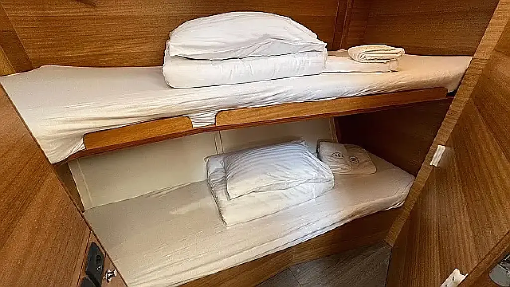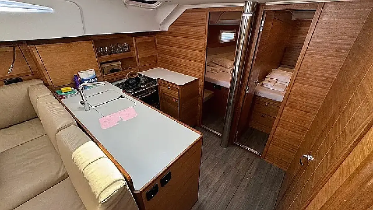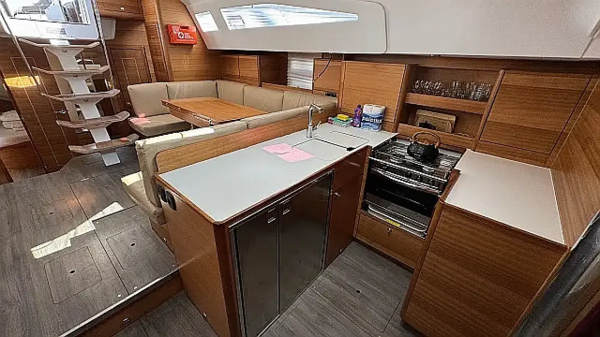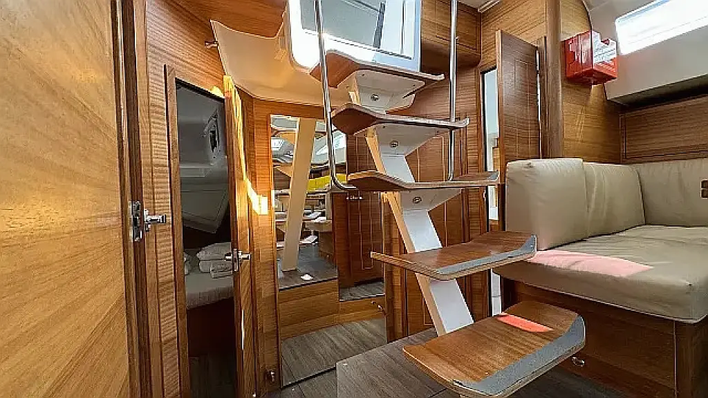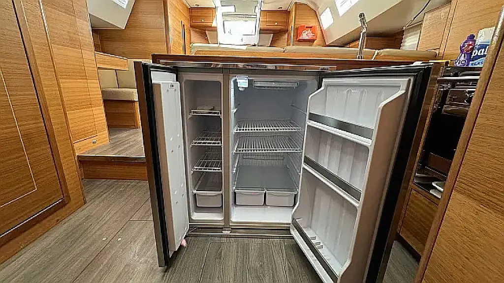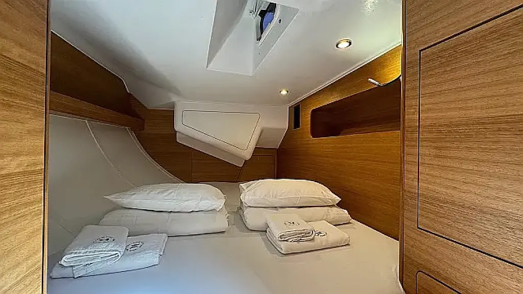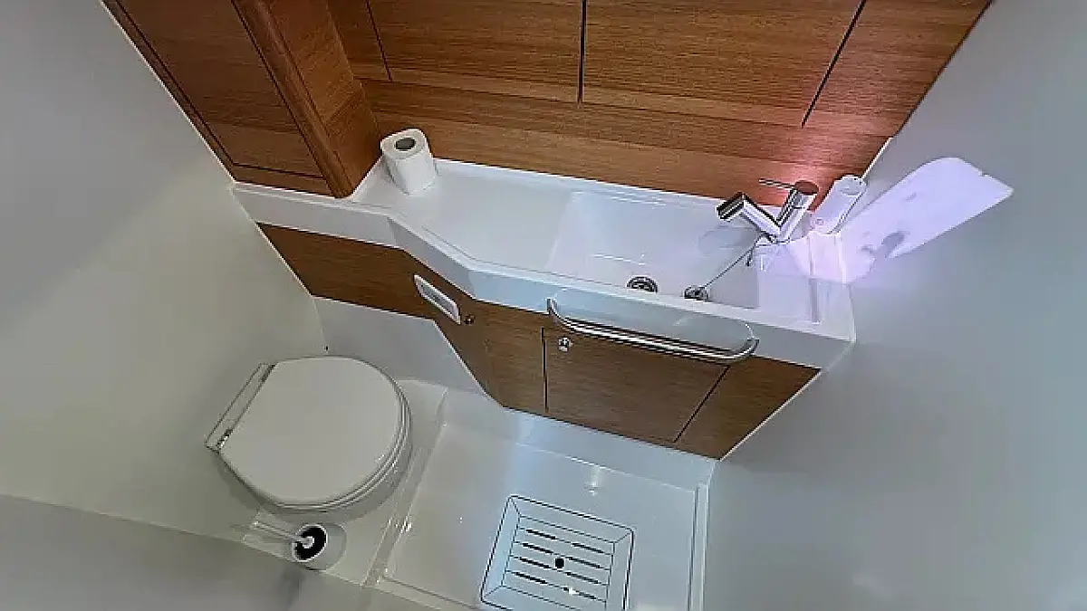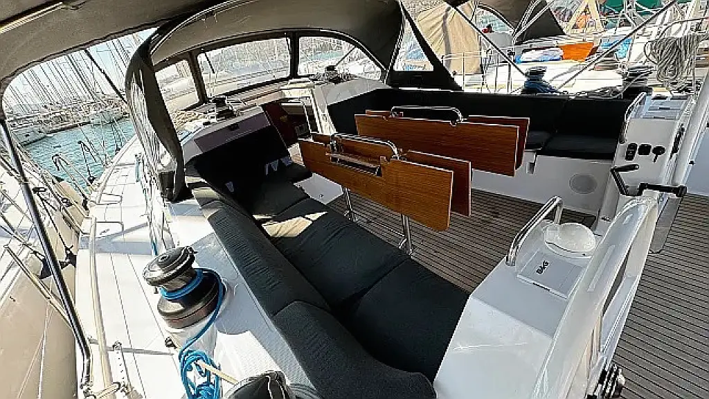 Klimaanlage, Badeplattform, Bimini, Cockpit-Kissen, Lautsprecher im Cockpit, Beiboot, Kühlschrank, Elektrische Toilette, Generator, Heizung, Fäkalientank, Sprayhood, Teak Cockpit, Wi-Fi und Internet