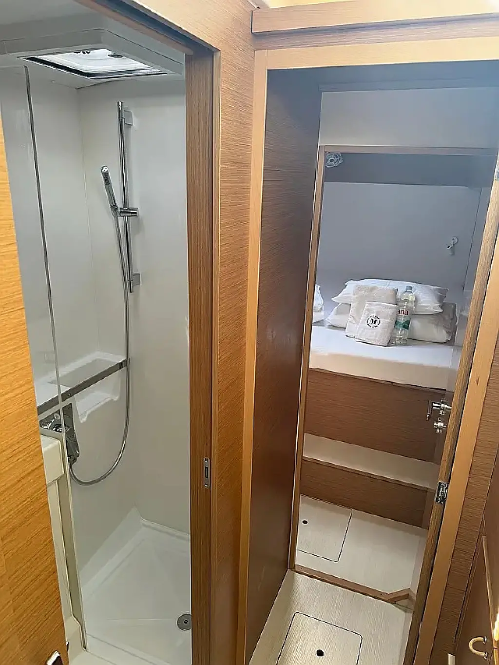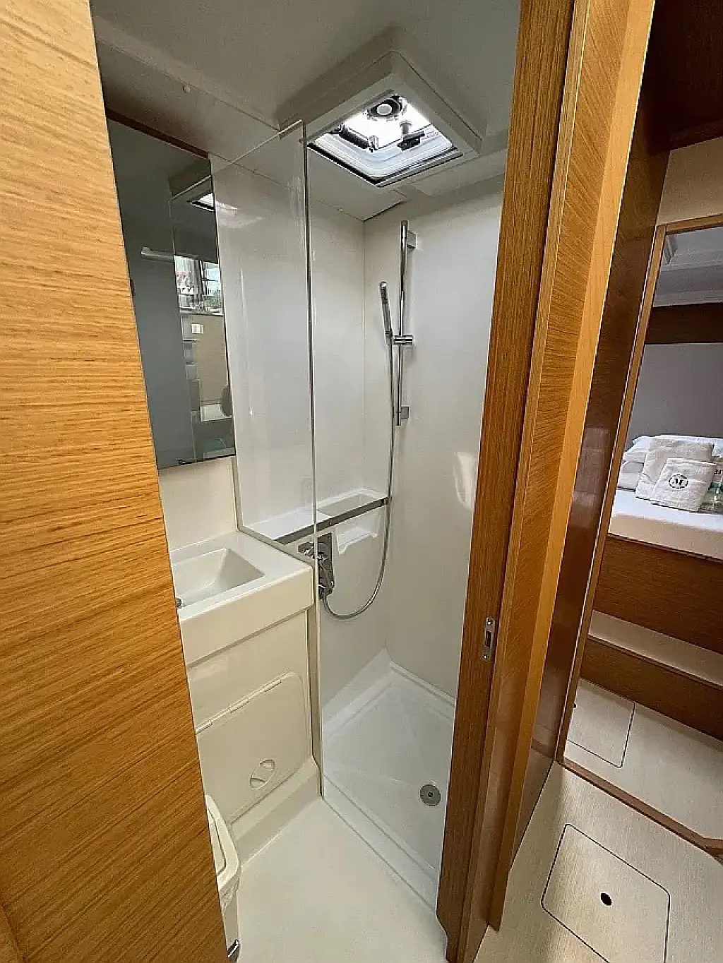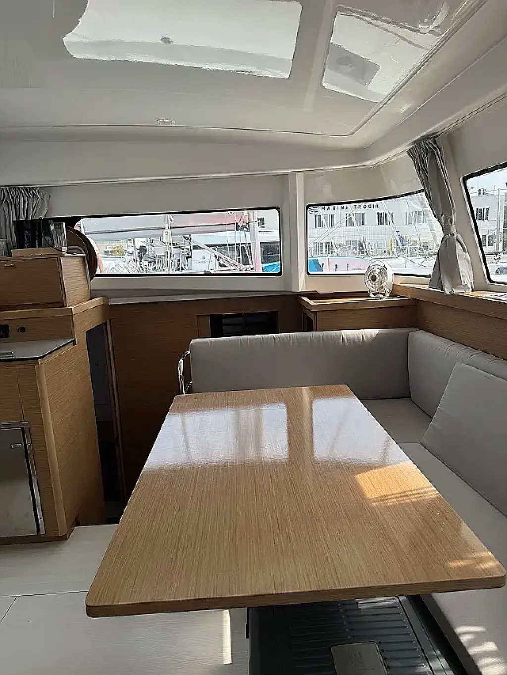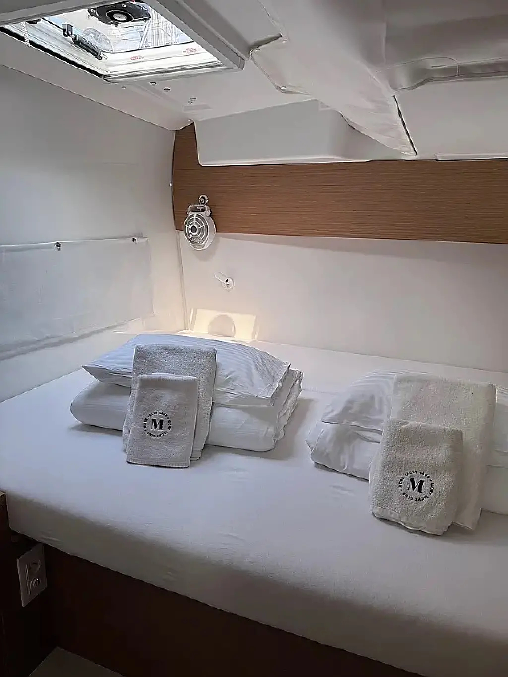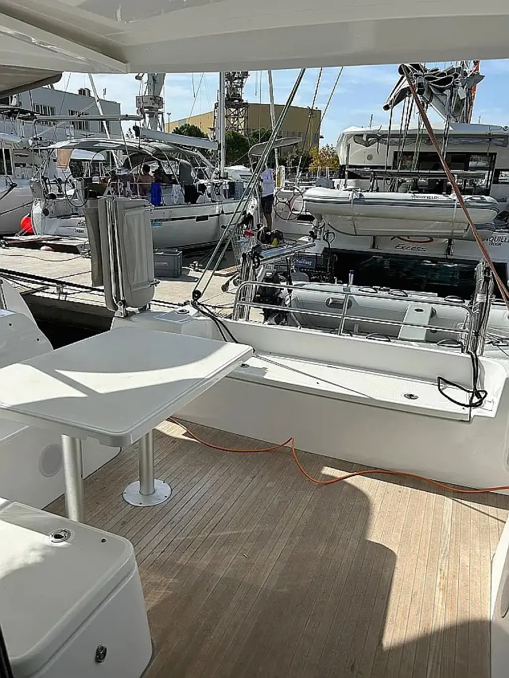 Klimaanlage, Bimini, Cockpit-Kissen, Lautsprecher im Cockpit, Beiboot, Kaffeemaschine, Kühlschrank, Elektrische Toilette, Generator, Heizung, Fäkalientank, Inverter, Außenbordmotor, Solar-Panele, Wi-Fi und Internet
