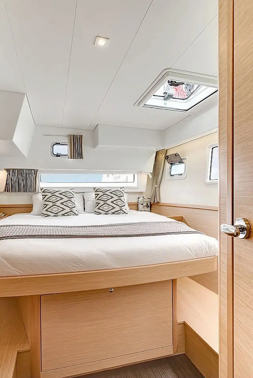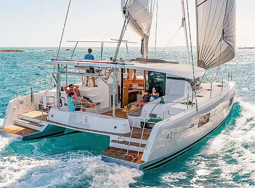 Kühlschrank, Klimaanlage, Bimini, Cockpit-Kissen, Lautsprecher im Cockpit, Beiboot, Kaffeemaschine, Elektrische Toilette, Generator, Heizung, Fäkalientank, Inverter, Außenbordmotor, Teak Cockpit, Wi-Fi und Internet