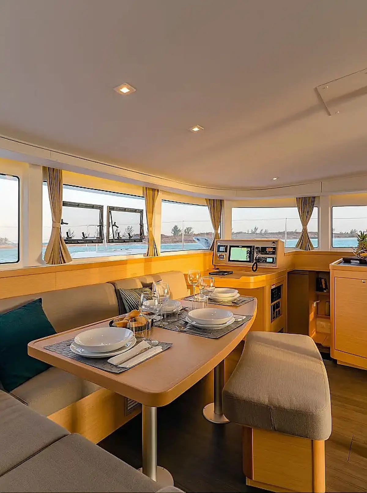 Kühlschrank, Klimaanlage, Bimini, Cockpit-Kissen, Lautsprecher im Cockpit, Beiboot, Kaffeemaschine, Elektrische Toilette, Generator, Heizung, Fäkalientank, Außenbordmotor, Solar-Panele, Teak Cockpit, Wi-Fi und Internet