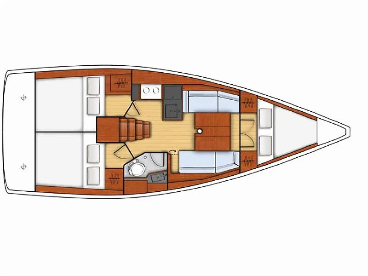 Bimini, Badeplattform, Sprayhood, Beiboot, Außenbordmotor, Kühlschrank, Lautsprecher im Cockpit, Wi-Fi und Internet, Heizung