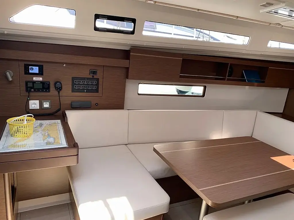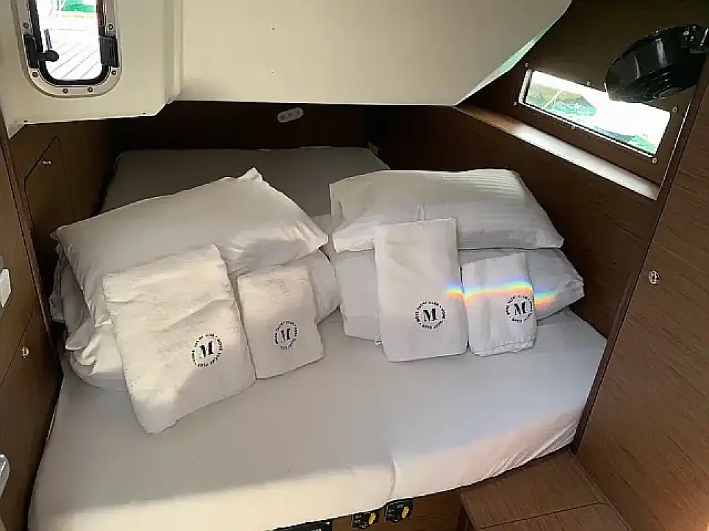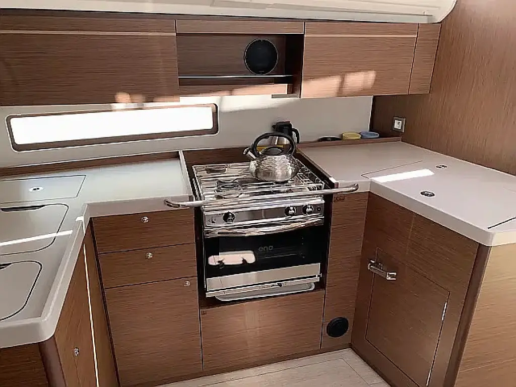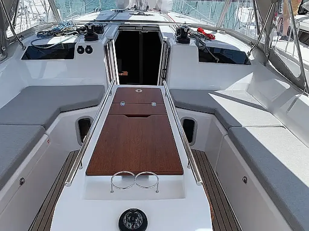 Badeplattform, Bimini, Cockpit-Kissen, Lautsprecher im Cockpit, Beiboot, Kühlschrank, Elektrische Toilette, Heizung, Fäkalientank, Inverter, Sprayhood, Teak Cockpit, Wi-Fi und Internet