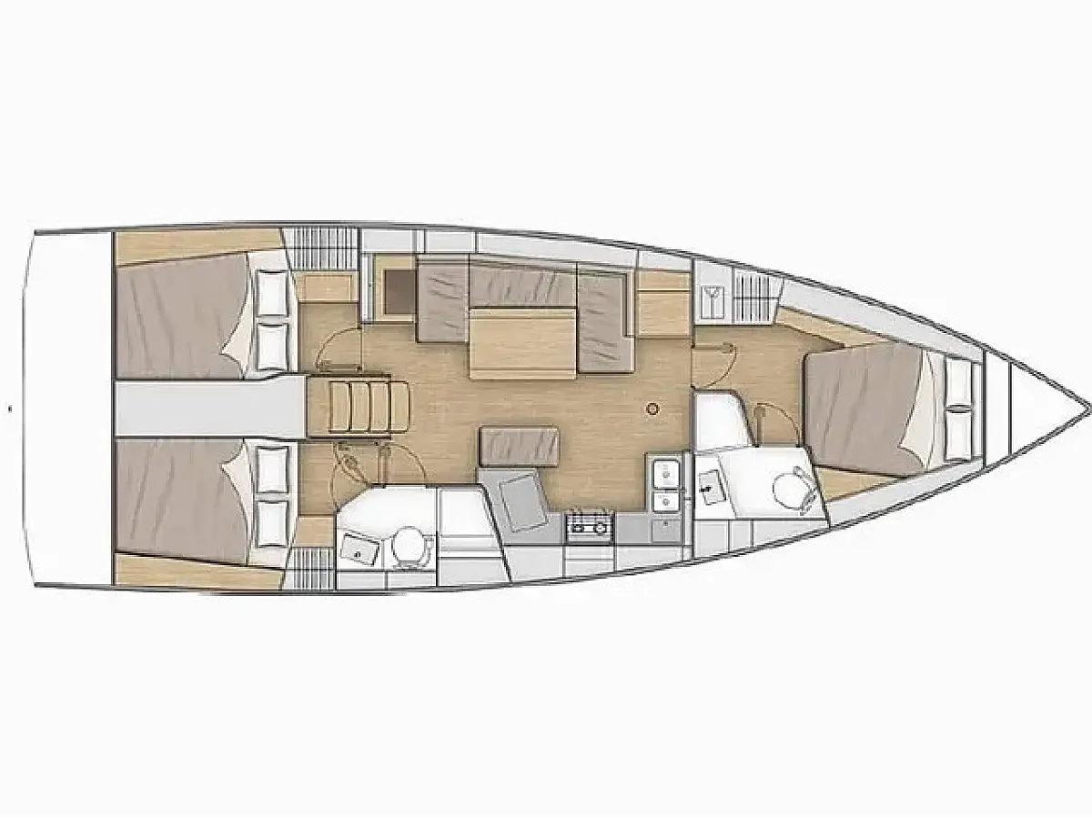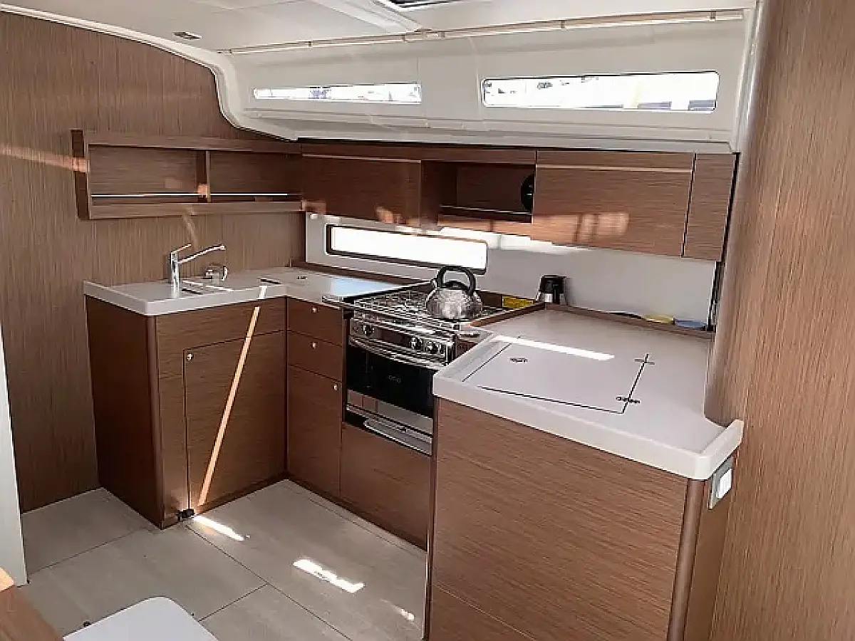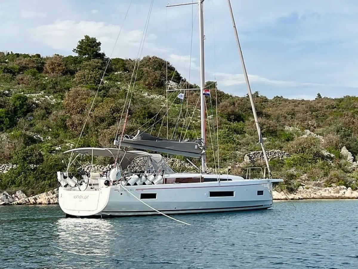Badeplattform, Bimini, Cockpit-Kissen, Lautsprecher im Cockpit, Beiboot, Kühlschrank, Elektrische Toilette, Heizung, Fäkalientank, Inverter, Sprayhood, Teak Cockpit, Wi-Fi und Internet