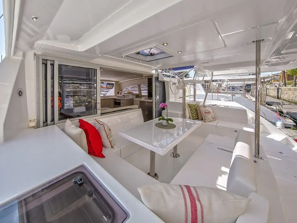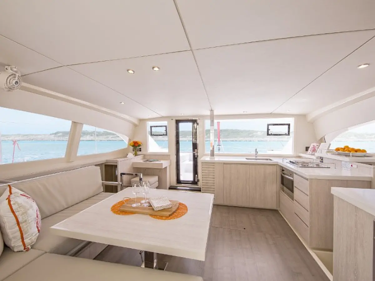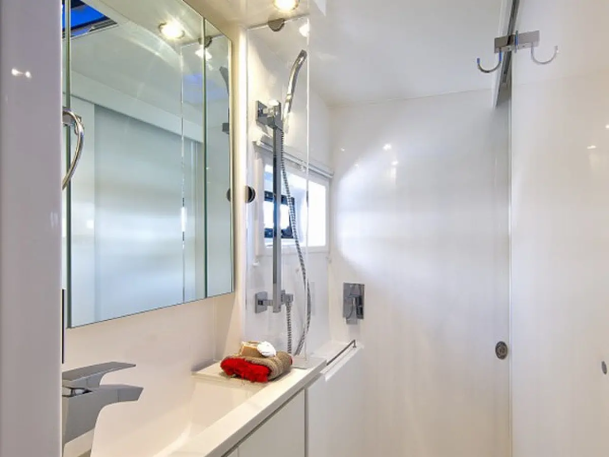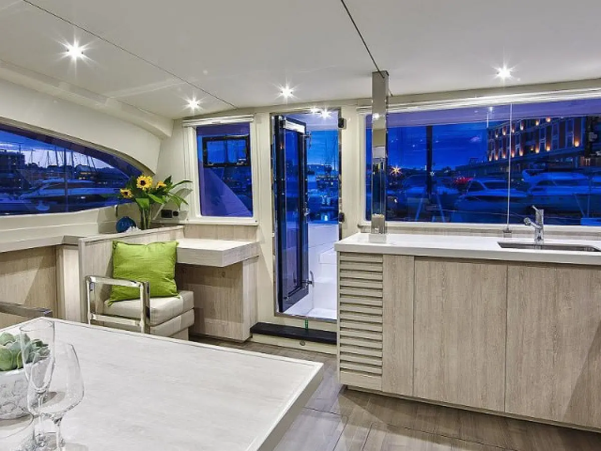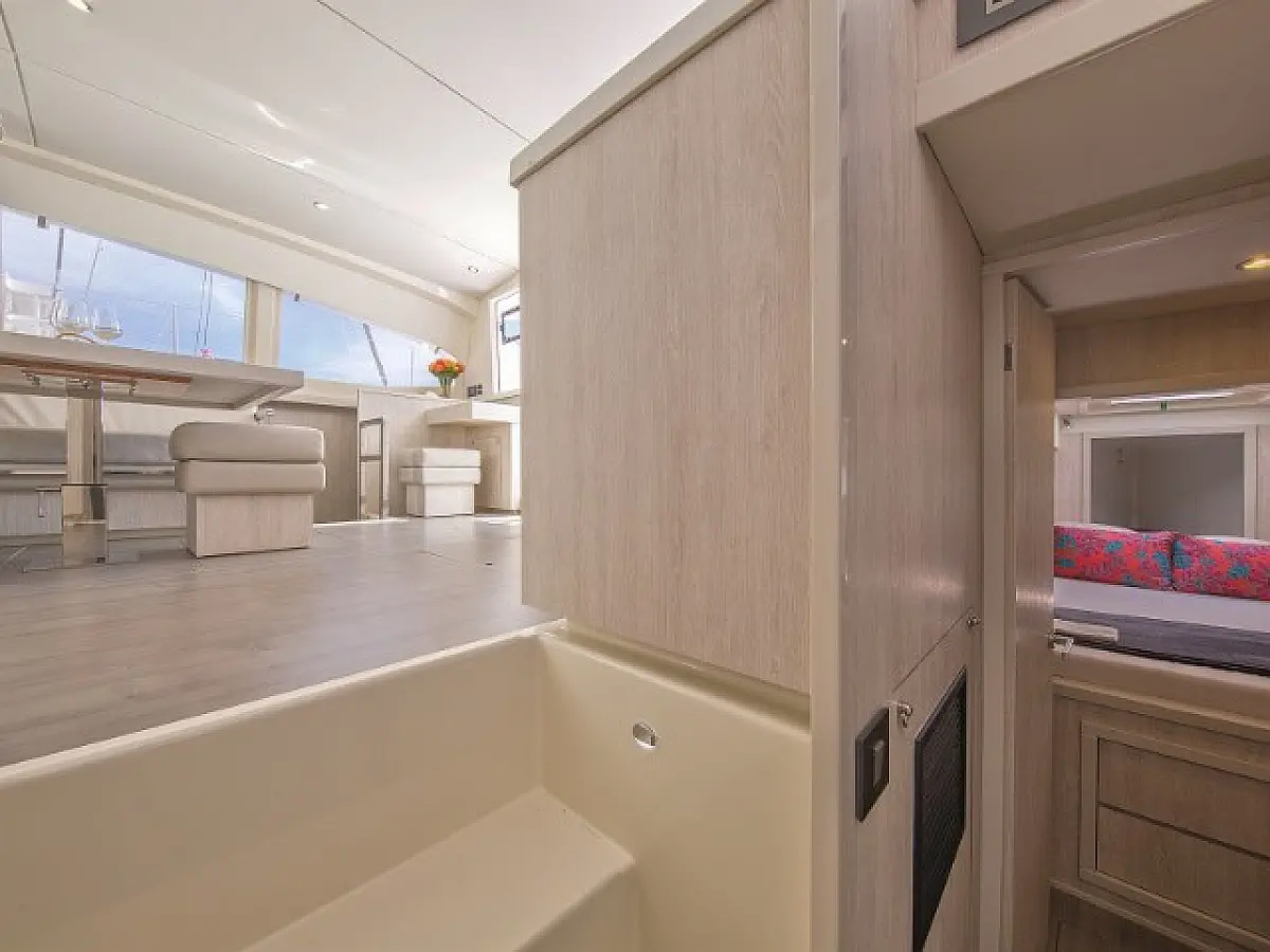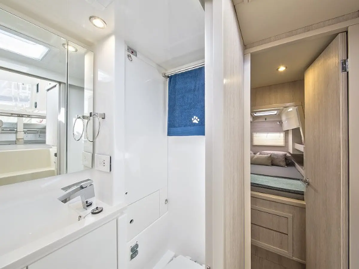 Kühlschrank, Elektrische Toilette, Klimaanlage, Elektrische Winch (Segel), Lautsprecher im Cockpit, Cockpit-Kissen, Beiboot, Bimini, Generator